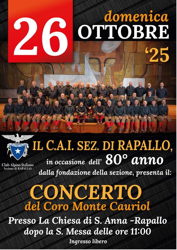 Il nostro tour de force di Ottobre terminerà Domenica 26 Ottobre a Rapallo (GE), dove festeggeremo con un nostro concerto gli 80 anni dalla fondazione della locale sezione del C.A.I.