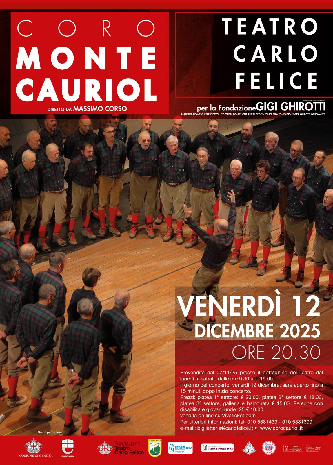 Il Coro Monte Cauriol compie 75 anni di attività e presenta il tradizionale concerto natalizio, per incontrare il suo pubblico e per un cordiale scambio di auguri. Con grande piacere coinvolgiamo anche quest’anno nell’organizzazione del concerto gli amici della Fondazione Gigi Ghirotti ETS, cui sarà devoluta parte del ricavato.